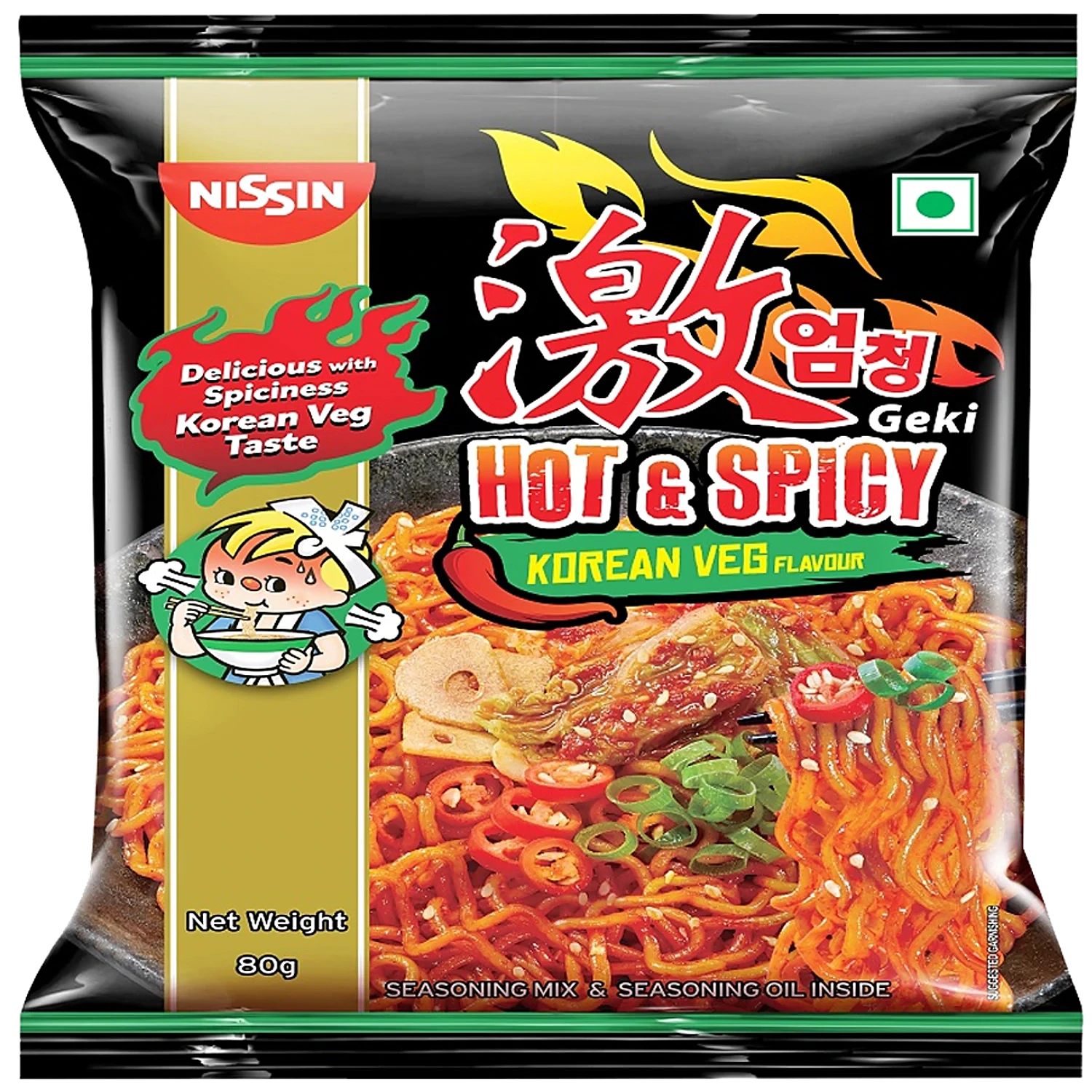 NISSIN HOT & SPICY KOREAN VEG NOODLES 80 GM.